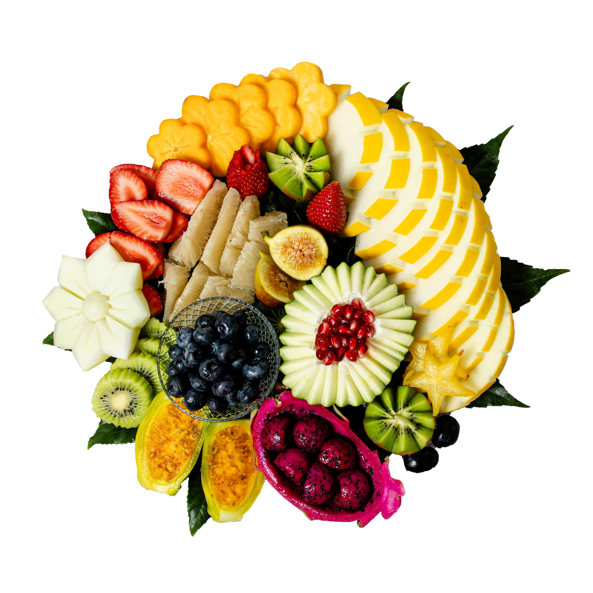 אנו מאמינים כי שילוב וחיבור של יצירתיות, טריות וצבעוניות יכול ליצור חיוך ולשמח. עבורנו, כל מגש פירות הוא יצירת אמנות קטנה המביאה אושר. אנו מייצרים באהבה מגשי פירות מרהיבים לאירועים וכמתנות שכיף לתת וכיף לקבל ברגעים החשובים והמשמעותיים בחיים כל פרי נבחר בקפידה נשטף, מקולף ונחתך במקצועיות רבה, ולבסוף מעוצב למגשי פירות מושלמים ומרשימים עבורכם. אנו משקיעים במצוינות בכל שלב כדי לספק את התוצרת והשירות הטובים ביותר. הפכנו גילוף פירות לאומנות - כל ארוחה או אירוע יהפכו לחגיגיים יותר